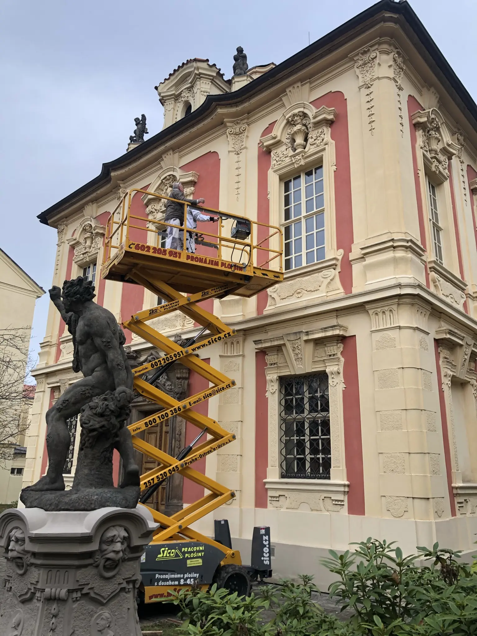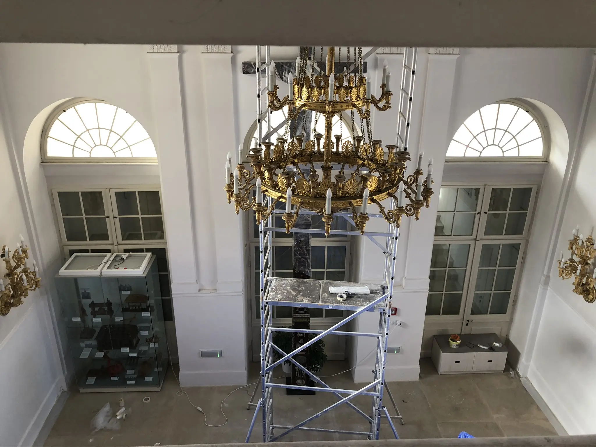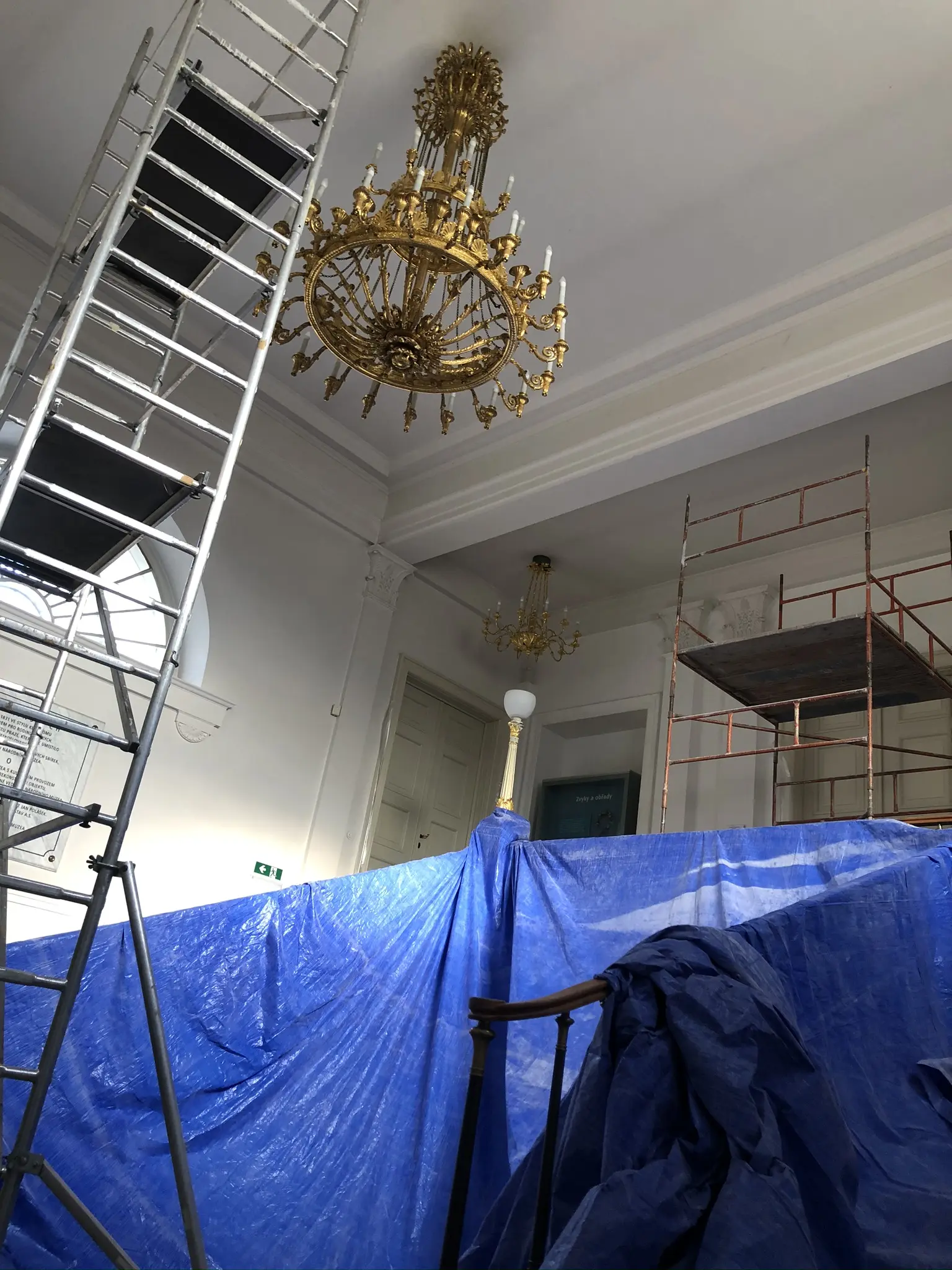 Opravy maleb ve výstavním sále.