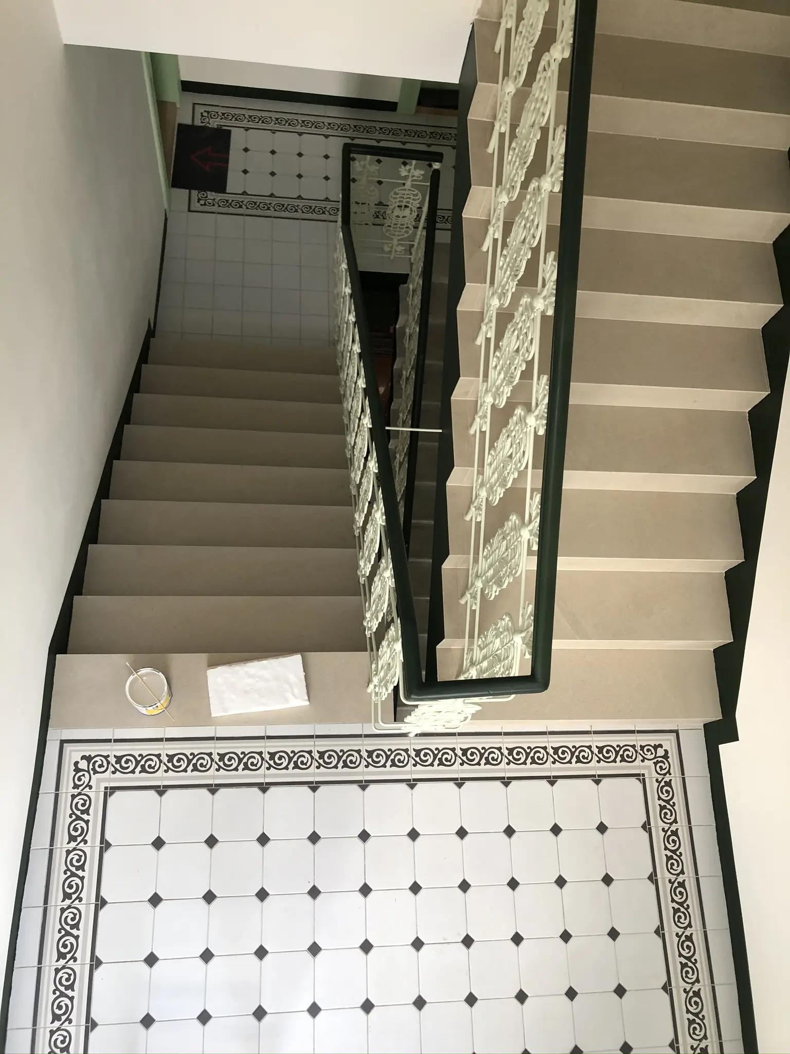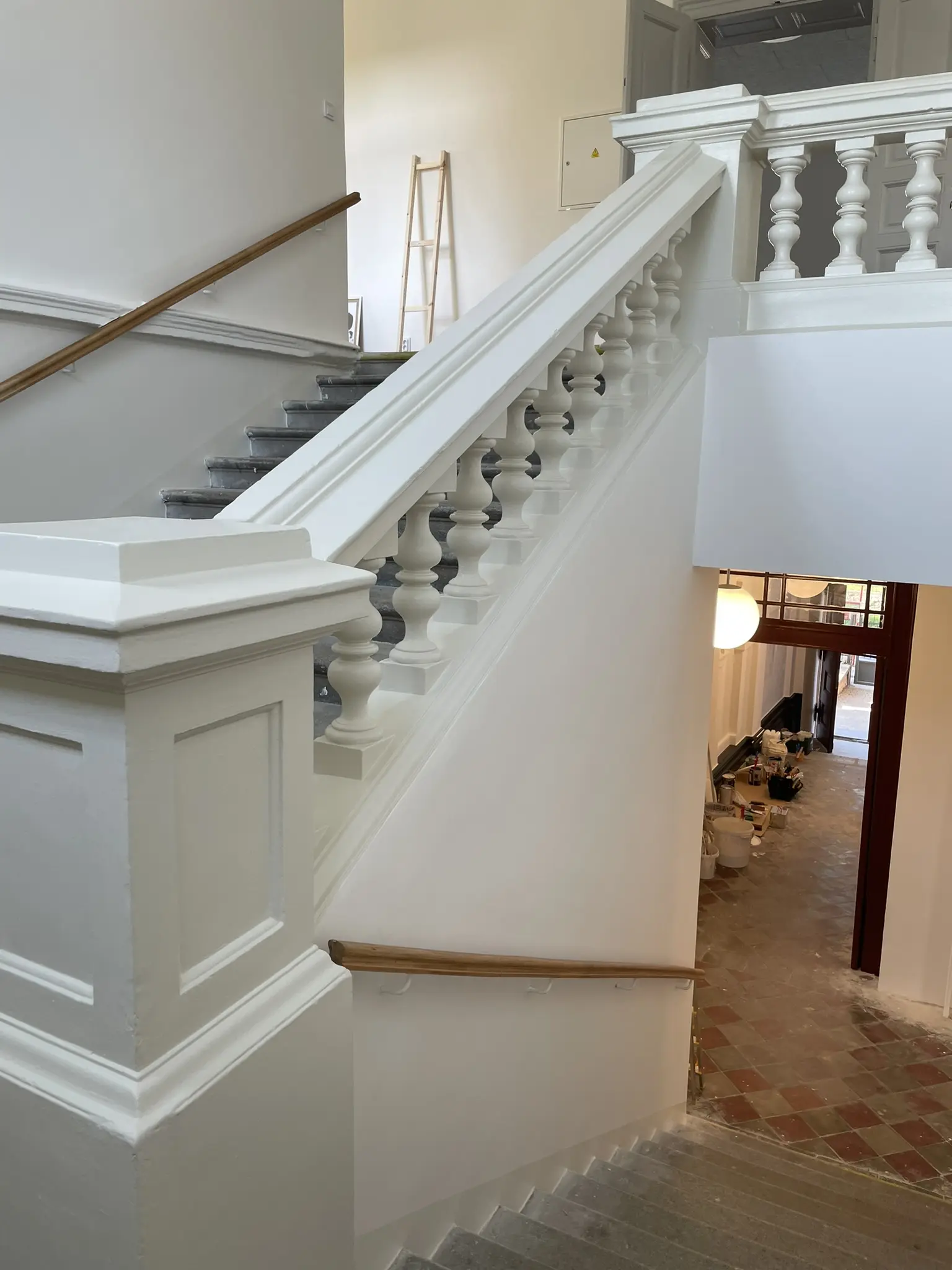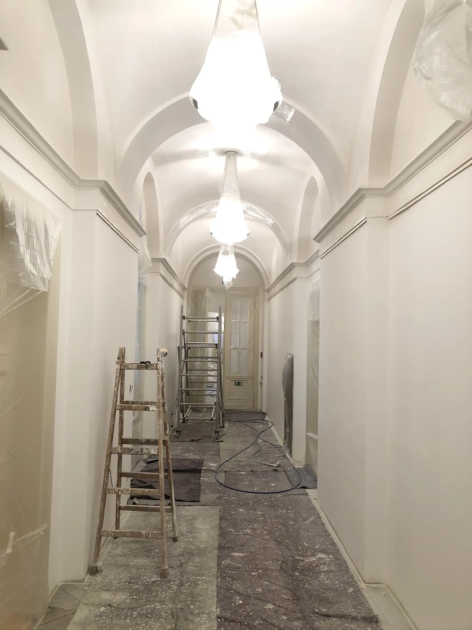 Výmalba hlavního schodiště, obvodových chodeb, vstupu a venkovního podloubí.
