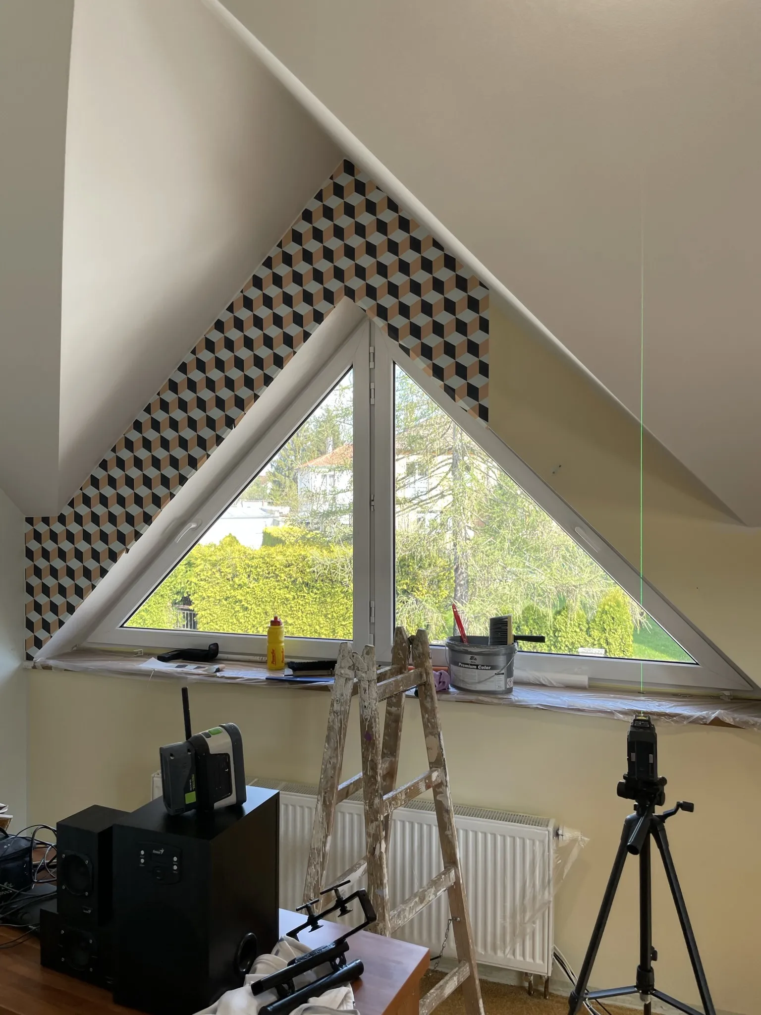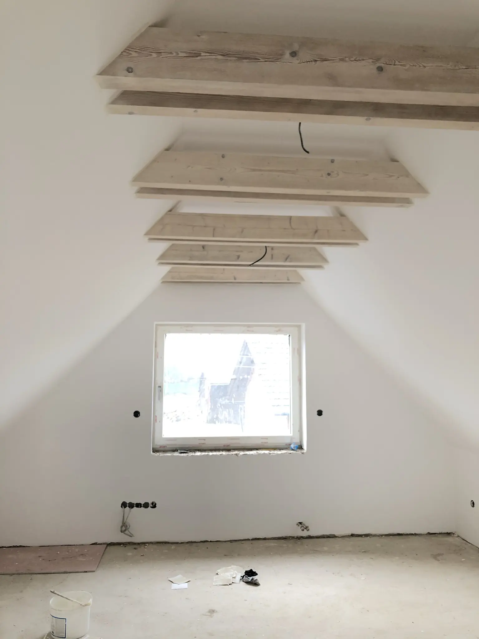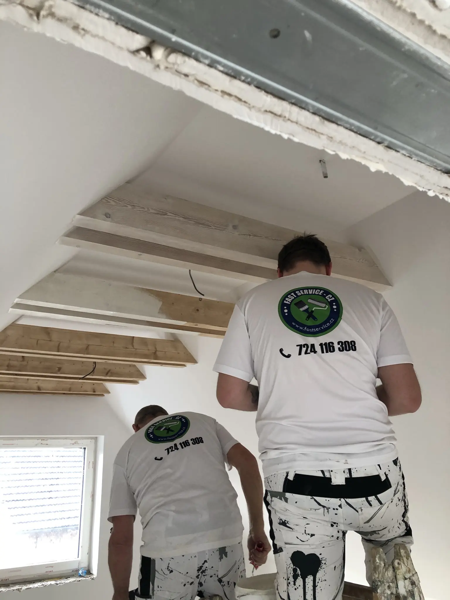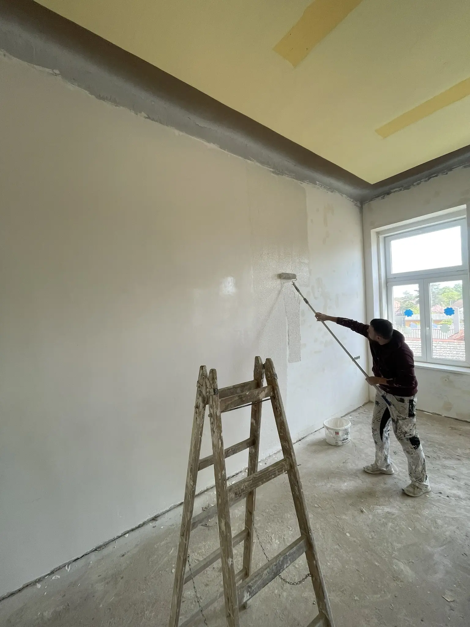 Výmalba a nátěry oken při rekonstrukci elektroinstalace.