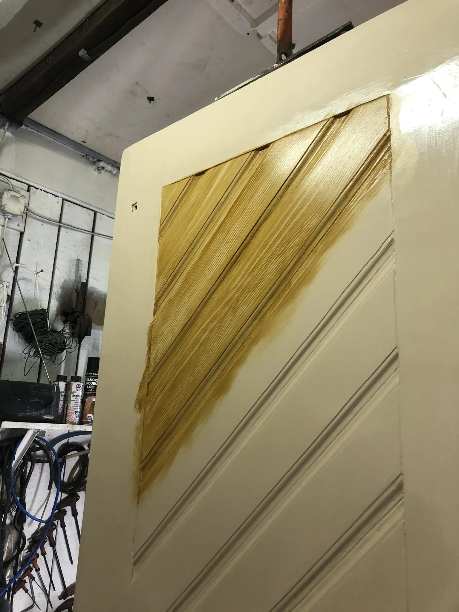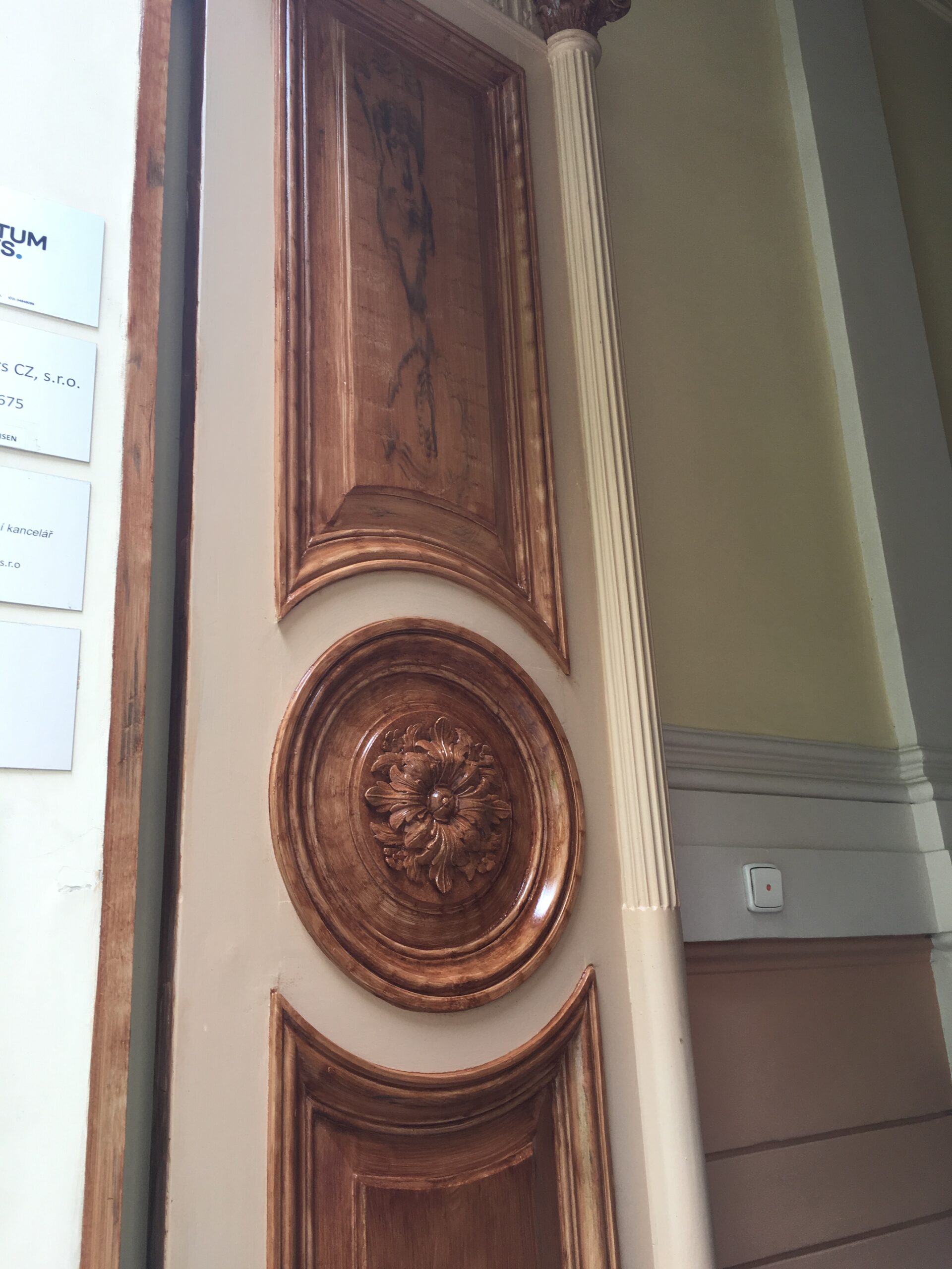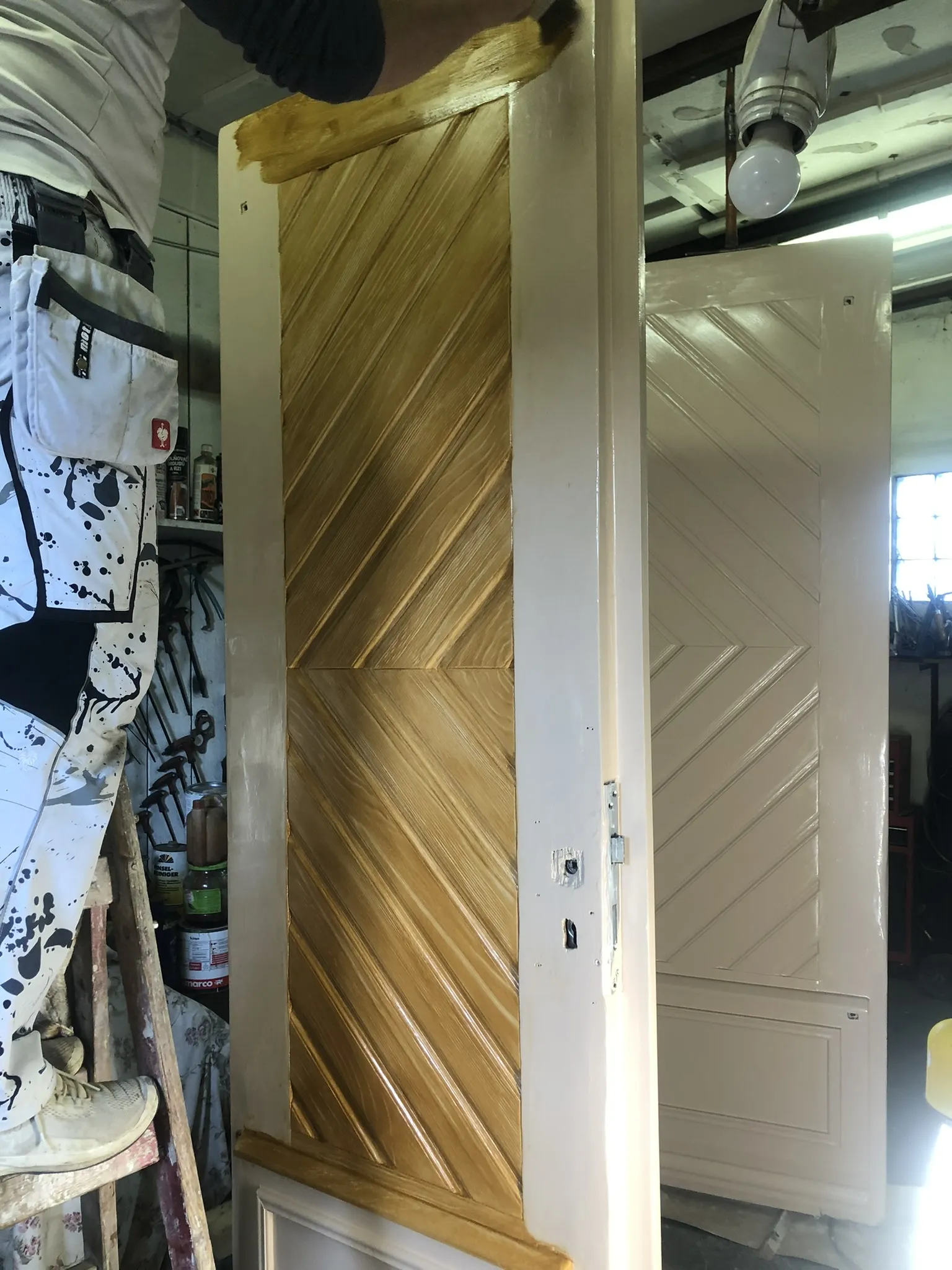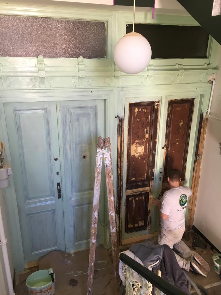 Fládrování vchodových dveří, restaurování lítaček, malířské práce.