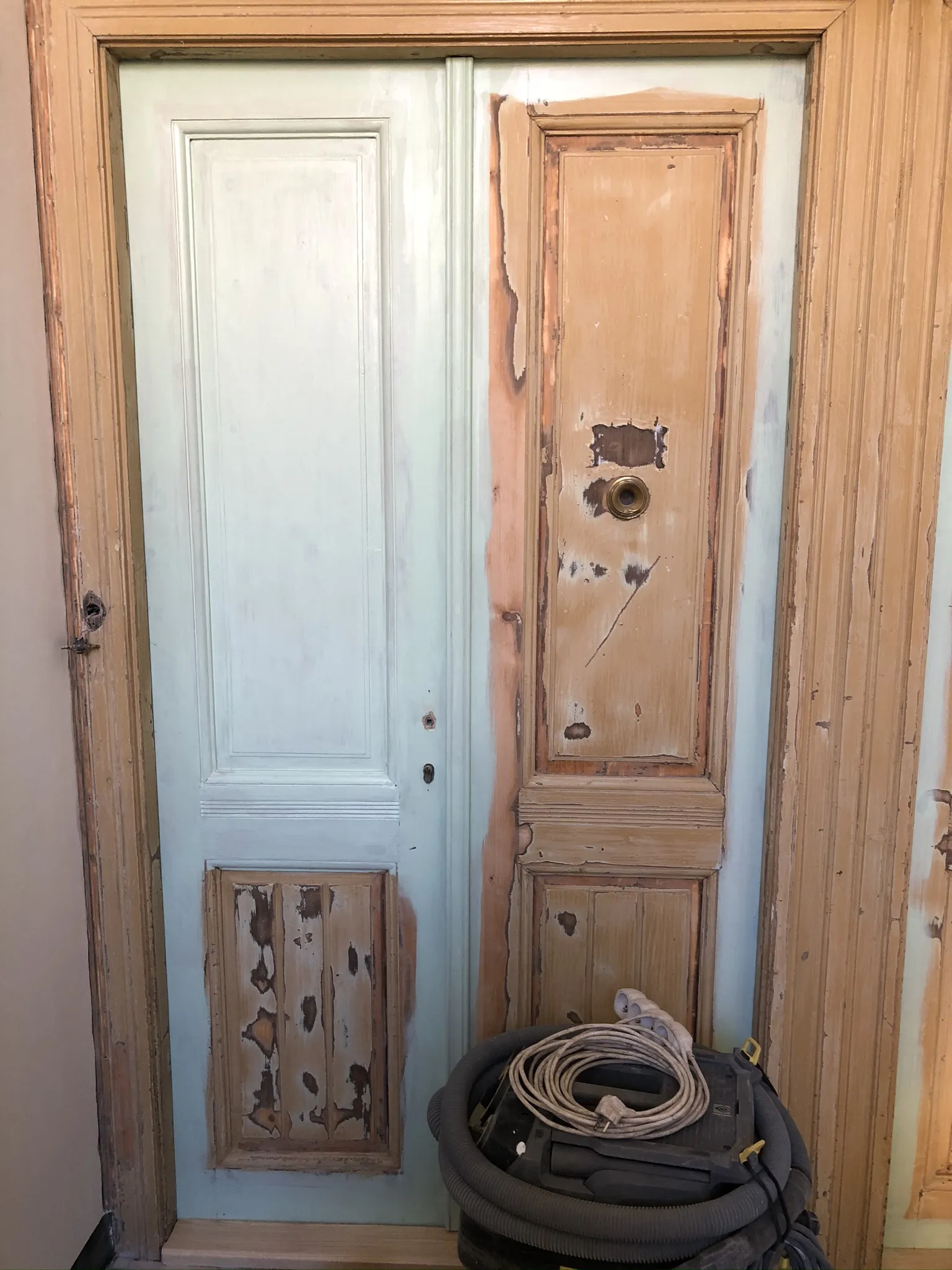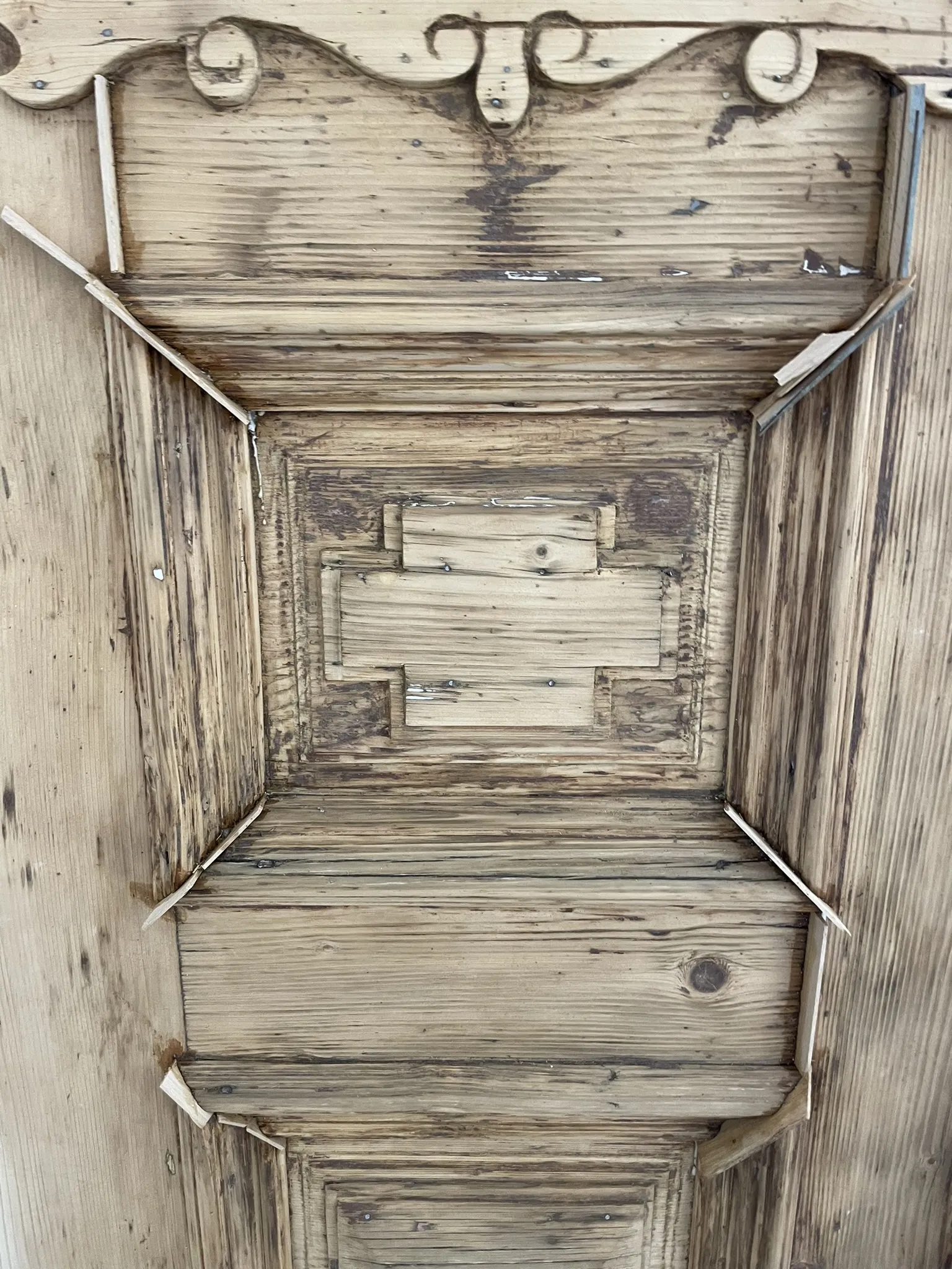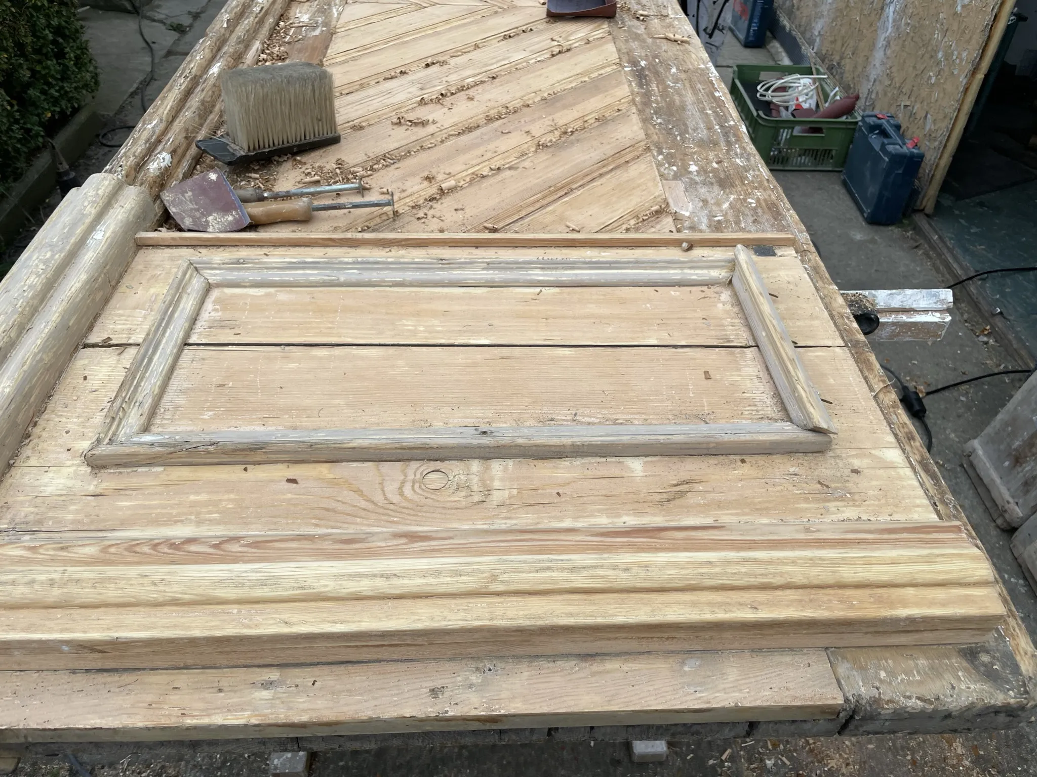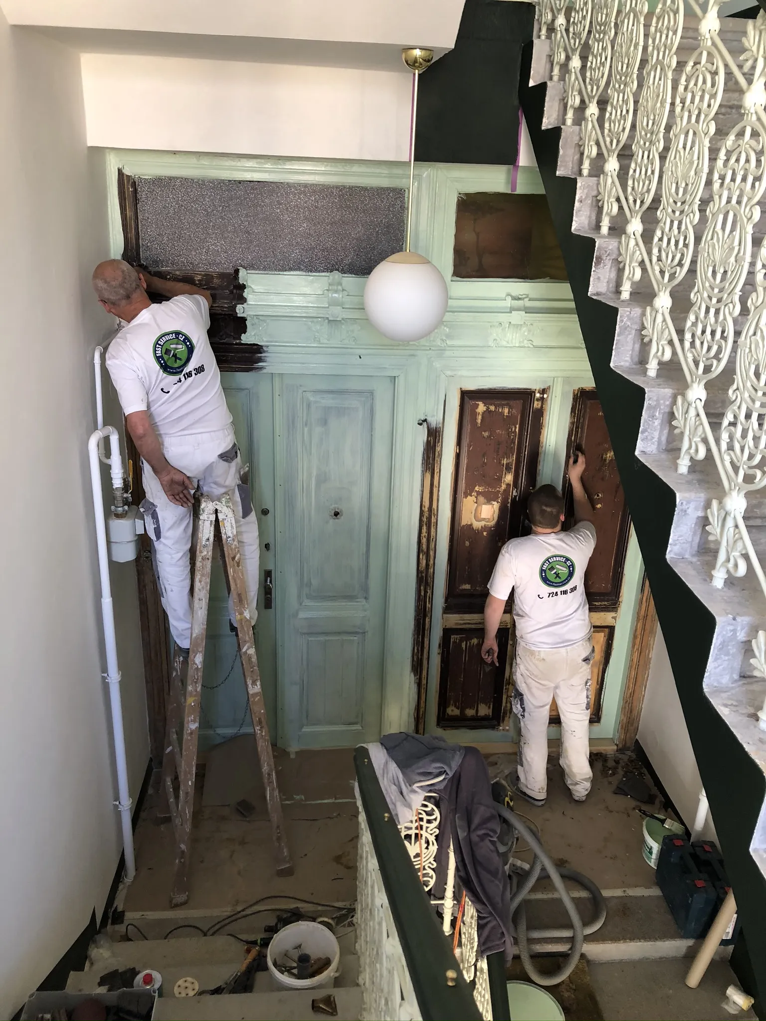 Fládrování vchodových dveří, restaurování lítaček, malířské práce.