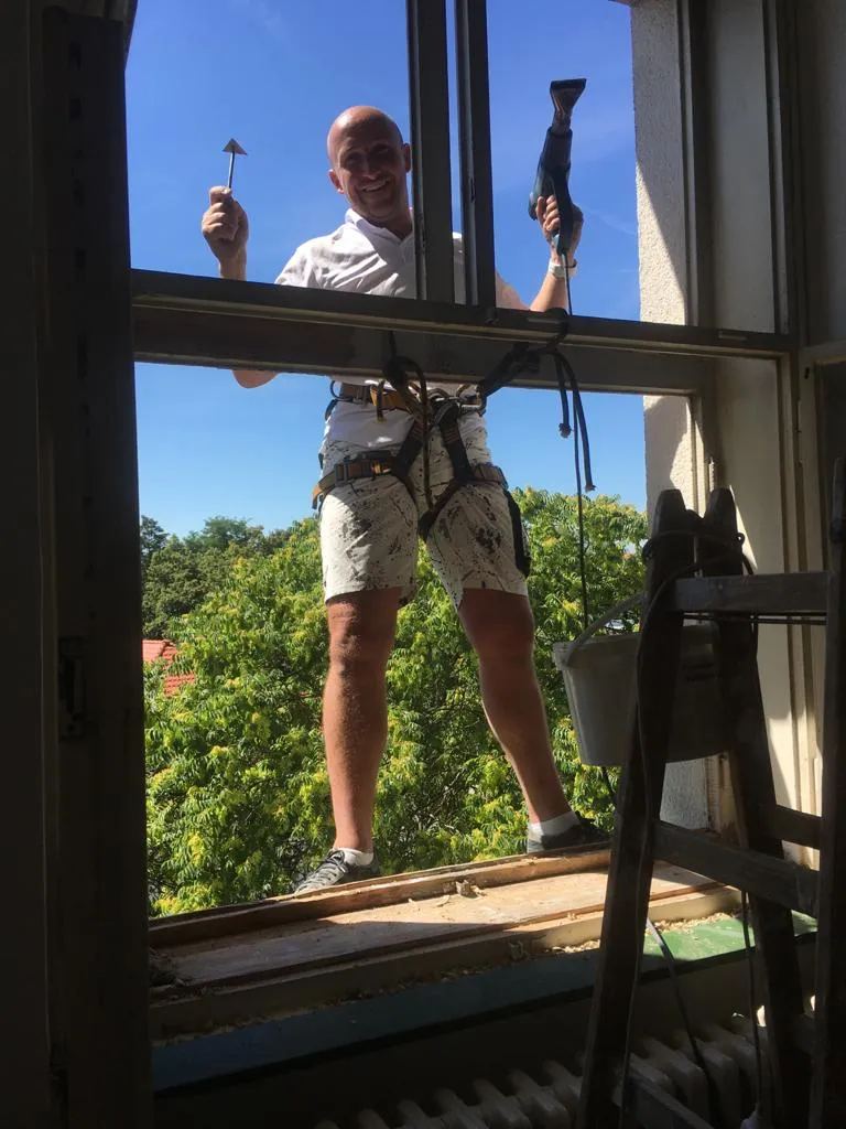 Havarijní oprava oken v areálu.